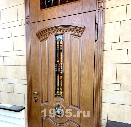 Дверь с ковкой и декором «лев»