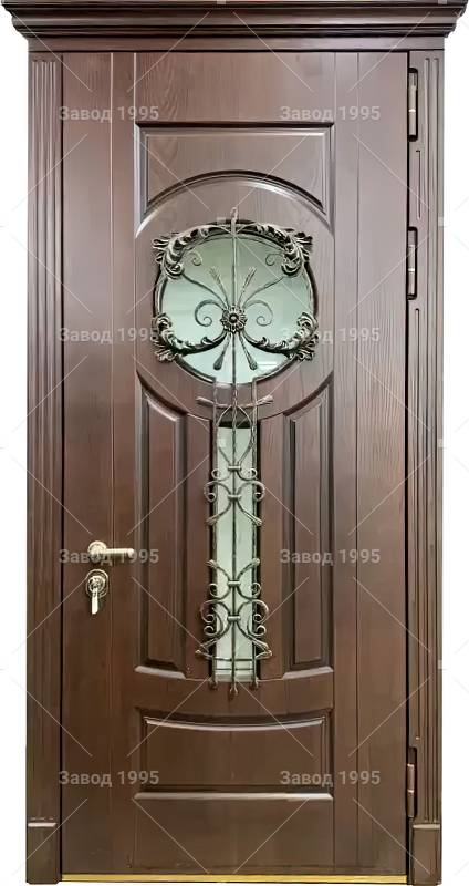 Дверь с ковкой, стеклопакетом и декоративными элементами
