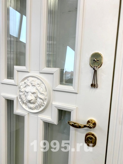 Стальная дверь с МДФ, остеклением и карнизом Арт: 414