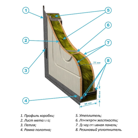 | Утепление: | Минеральная вата URSA, двойной контур уплотнения |
