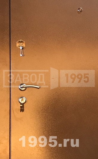 Универсальность входной конструкции заключается в практичной и привлекательной отделке. Изнутри стальное полотно оформлено винилискожей. Антивандальное порошковое напыление покрывает внешнюю часть полотна.