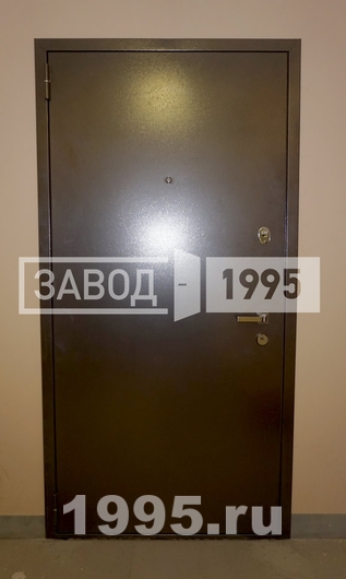 Недорогие металлические офисные двери отделаны порошковым напылением и ламинатом. Полимерное напыление имеет антивандальные свойства, а кроме того, оно отлично защищает сталь от коррозии. Ламинат – экологичный и приятный на ощупь материал с красивым рисунком, имитирующим натуральное дерево. Он использован для отделки модели с внутренней стороны.