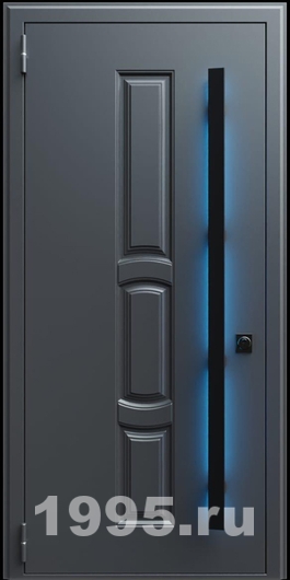 Стальная дверь с металлофиленкой, длинной ручкой с подсветкой и темно-серым порошковым окрашиванием RAL 7021 (тип №10) Арт: 858