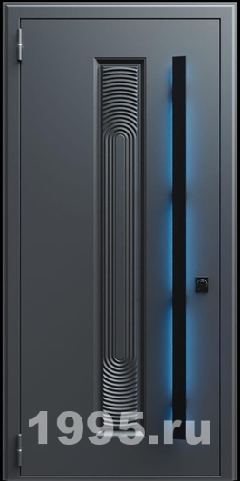 Стальная дверь с металлофиленкой, длинной ручкой с подсветкой и темно-серым порошковым окрашиванием RAL 7021 (тип №6) Арт: 854