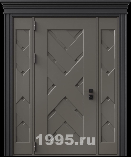 Стальная дверь с металлофиленкой, вставками по бокам, карнизом и порошковым покрытием RAL 7022 (тип №5) Арт: 886